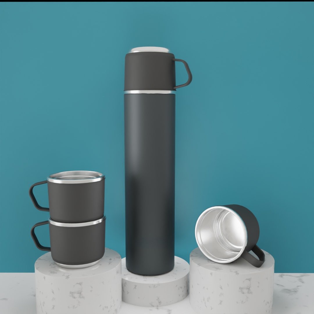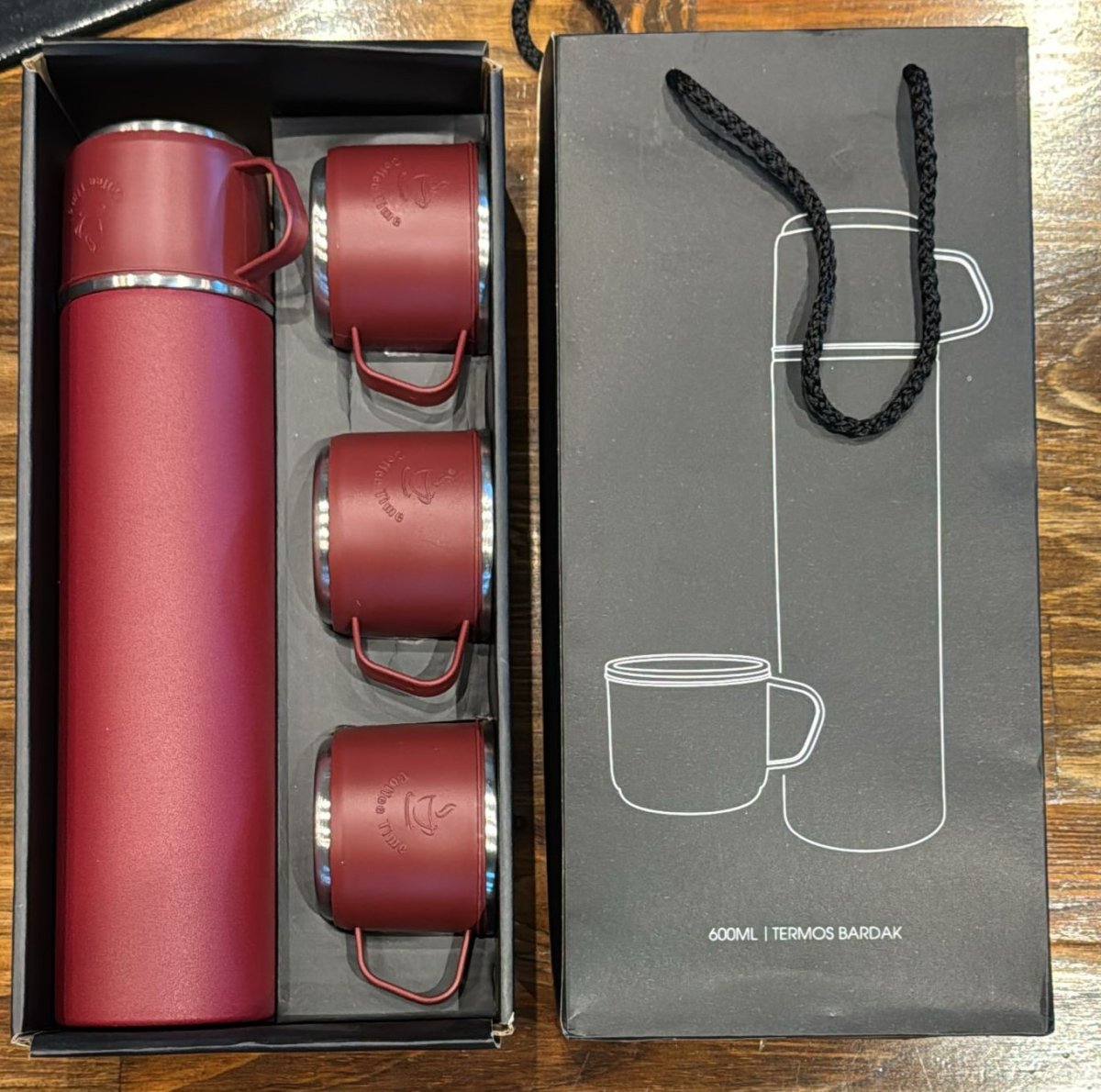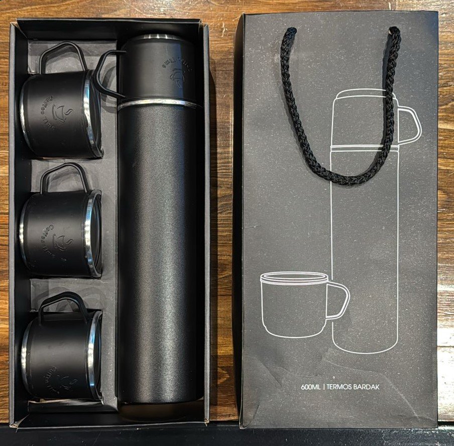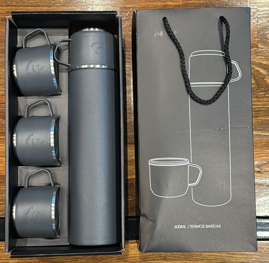 • 4 Termos Bardak ve 1 adet vakumlu termos mataradan oluşan setimiz özel çantalı kutusundadır.
